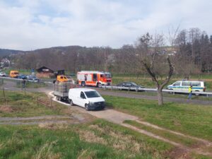 Am 27.03.2024 alamierte uns die Leitstelle Untermain gegen 8:40 Uhr zu einer Ölspur an die ST 2308. Vor Ort hatte ein Transporter Heizöl auf einem Anhänger geladen. Diese Tanks waren jedoch undicht, wodurch es zu einer erheblichen Ölverschmutzung kam.